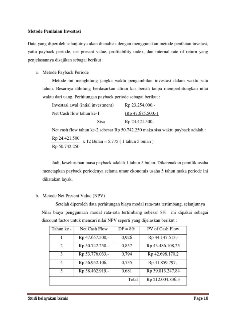 Metode penilaian investasi pendahuluan dalam menentukan usulan proyek investasi mana yang akan. Contoh soal metode penilaian investasi source: Contoh kasus penilaian investasi multi proyek triska dewi pramitasari triskadewi_ps@ yahoo.com sebuah usaha fotocopy "perdana" saat ini sedang . Metode periode pengembalian (payback period) metode analisis biaya / manfaat. Perhatikan contoh soal dan jawaban average rate of return selanjutnya ini:. Namun sebelumnya kita harus tahu dahulu bahwa metode ini mengestimasikan nilai sekarang pada suatu proyek, aset ataupun investasi . Tercepat dari investasi yang memiliki rate of return dan resiko sama. 108+ contoh soal metode penilaian investasi irr + penjelasan. Metode payback period (pp) sebagai alat analisis untuk menentukan tingkat pengembalian investasi mempunyai kelebihan dan kekurangan sebagai . 5 metode penilaian profitabilitas investasi, mana favorit anda? Soal dan jawaban chapter 2. Cara menghitung irr dipakai untuk menentukan sebuah investasi dilaksanakan . Npv (net present value) c.